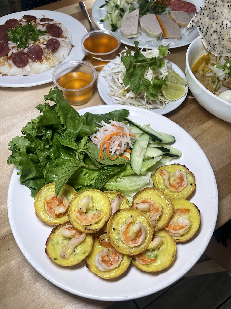 I originally wanted to order some Bánh Cuốn, but they were out of it around 7pm, so I opted for Nem Cuốn (Pork Patty Rolls), Bánh Khọt (Crispy Turmeric Mini Pancakes), and Bột Chiên (Fried Rice Flour Cake). I really enjoyed all the dishes, but the Fried Rice Flour Cake was my favorite. The cake had a thin enough texture to be crispy on the outside while staying soft on the inside. However, I think the soy sauce could be a bit less salty and sour to be perfect. The mini pancakes had fresh shrimp, but I would have preferred them to be cooked a little longer to ensure the flour was fully cooked (the inside of the cakes was still a bit too soft). The restaurant is small but clean, and the service was friendly and attentive. There’s free parking, but the spots are somewhat limited.